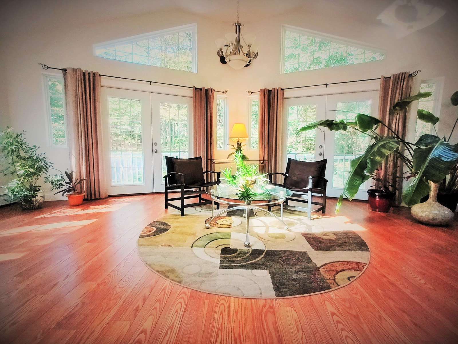 - Impressive 12 foot high vaulted ceilings in open-concept area, hall room and the huge 320 sq ft sunroom.