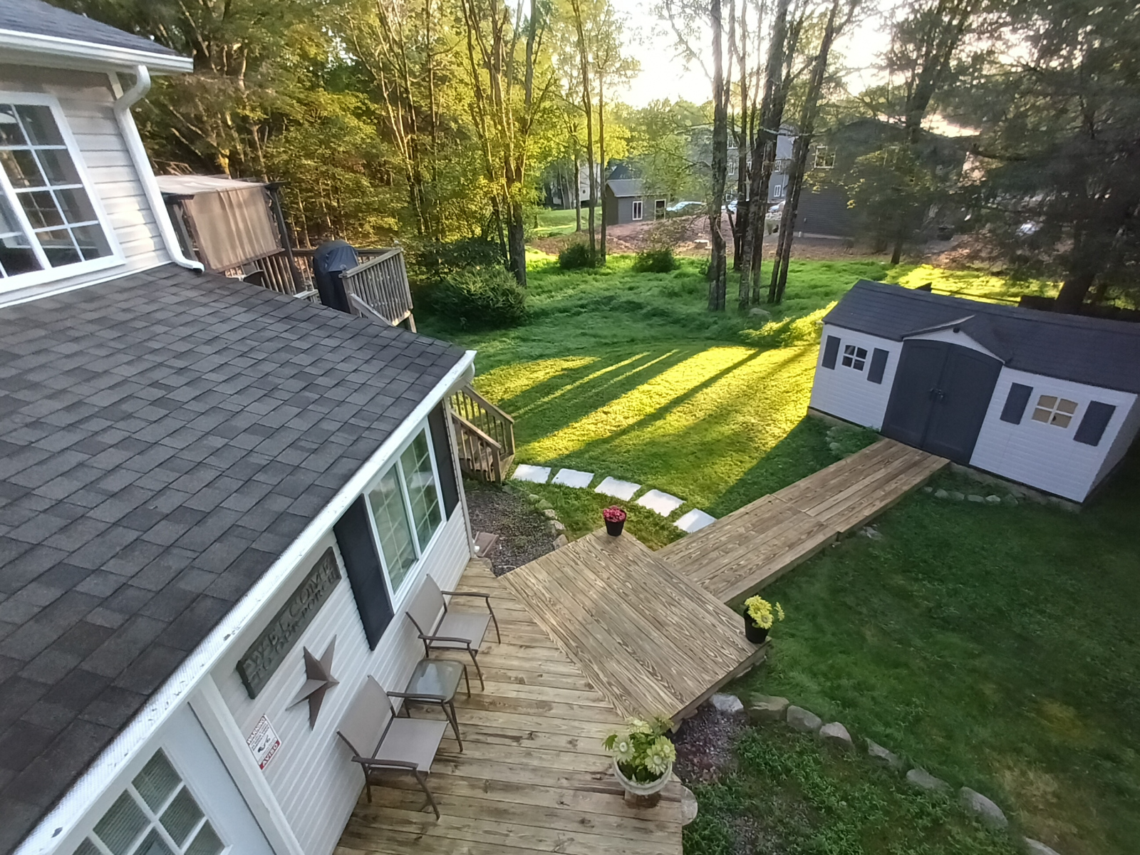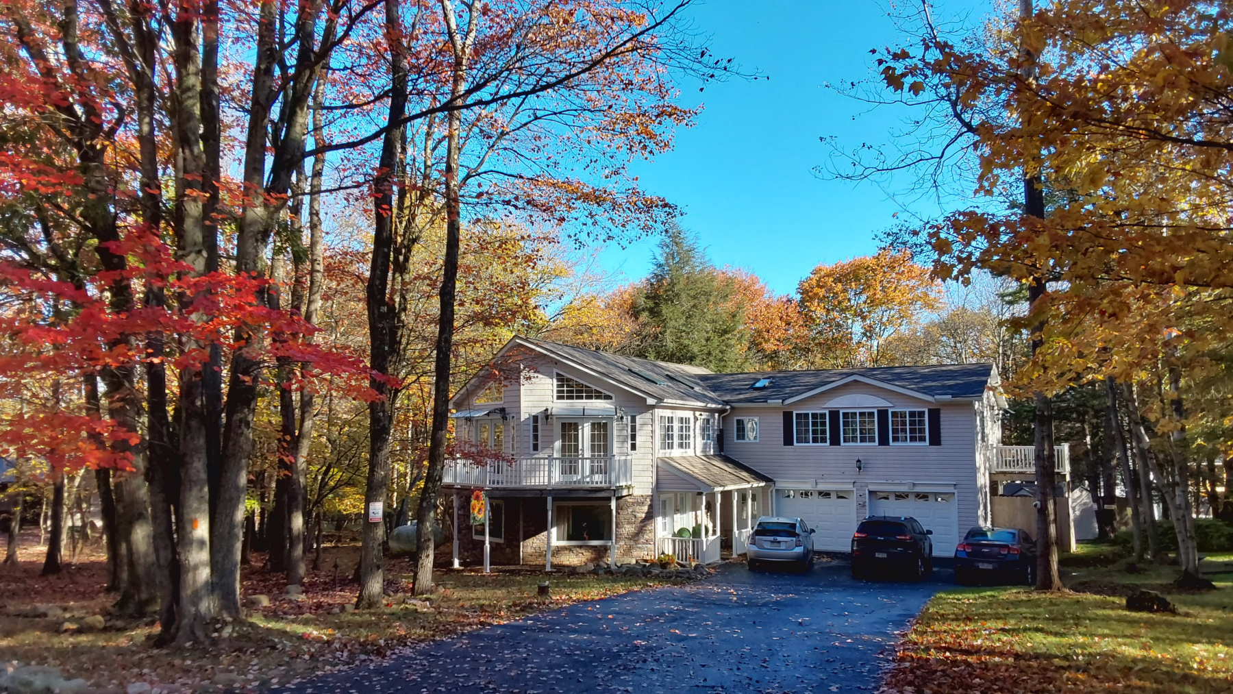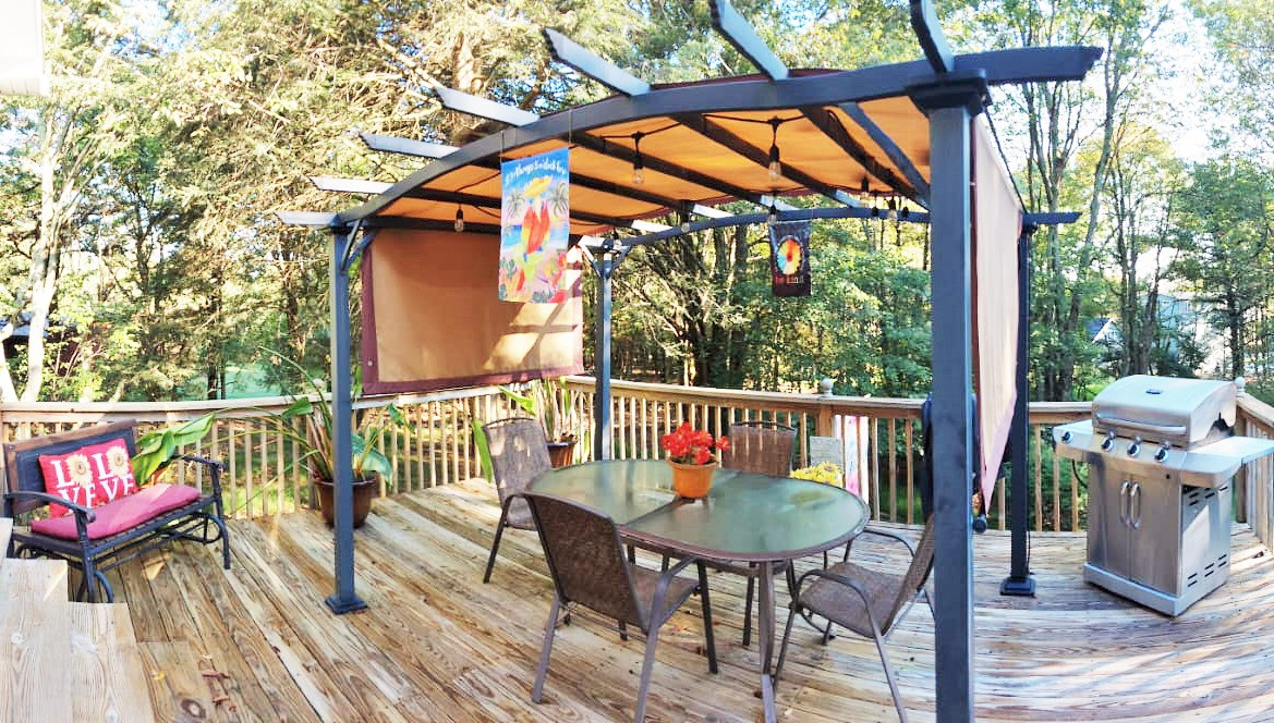 - 4 large decks for lounging and entertaining guests. Great views of the woods all around you.