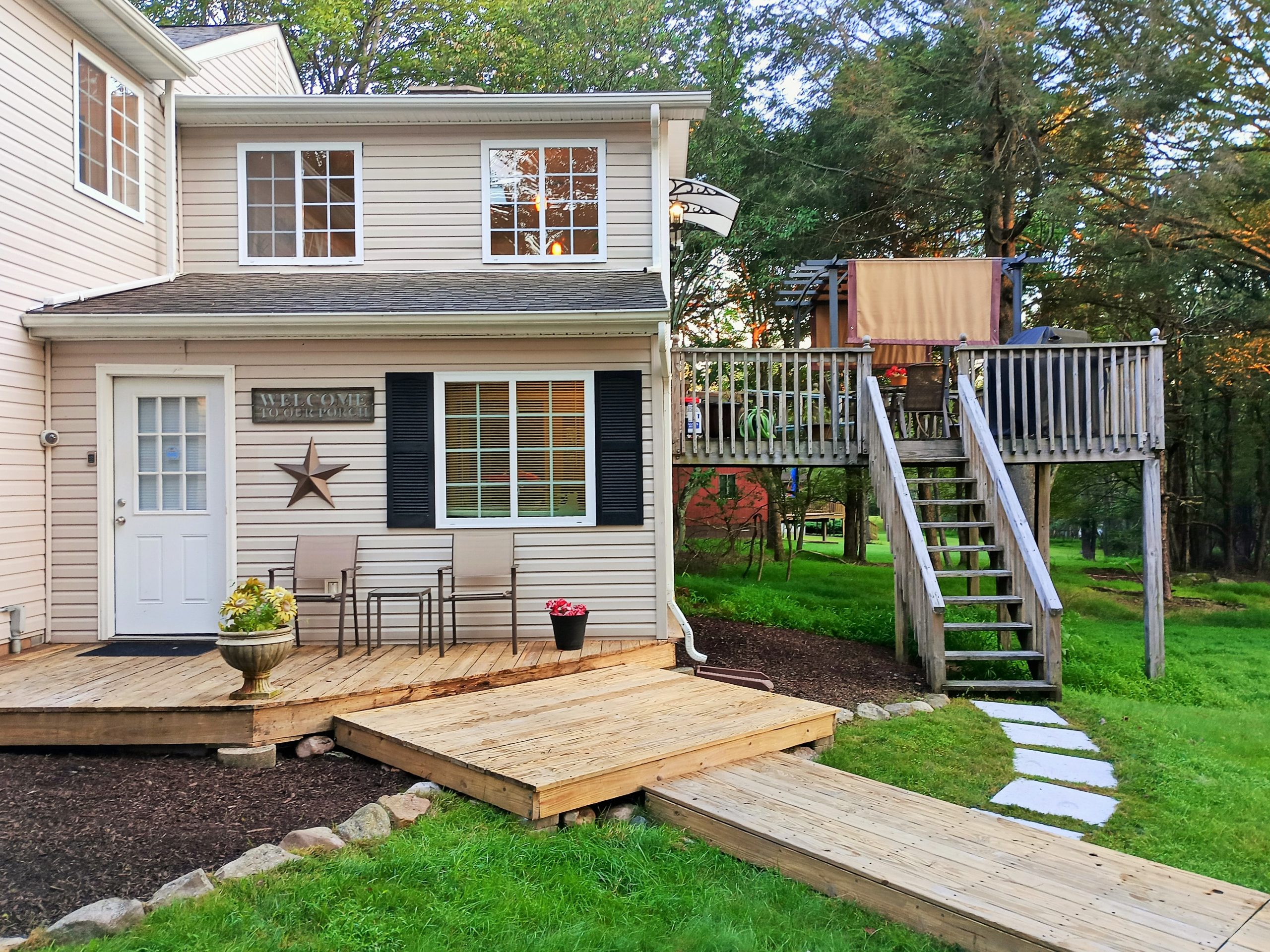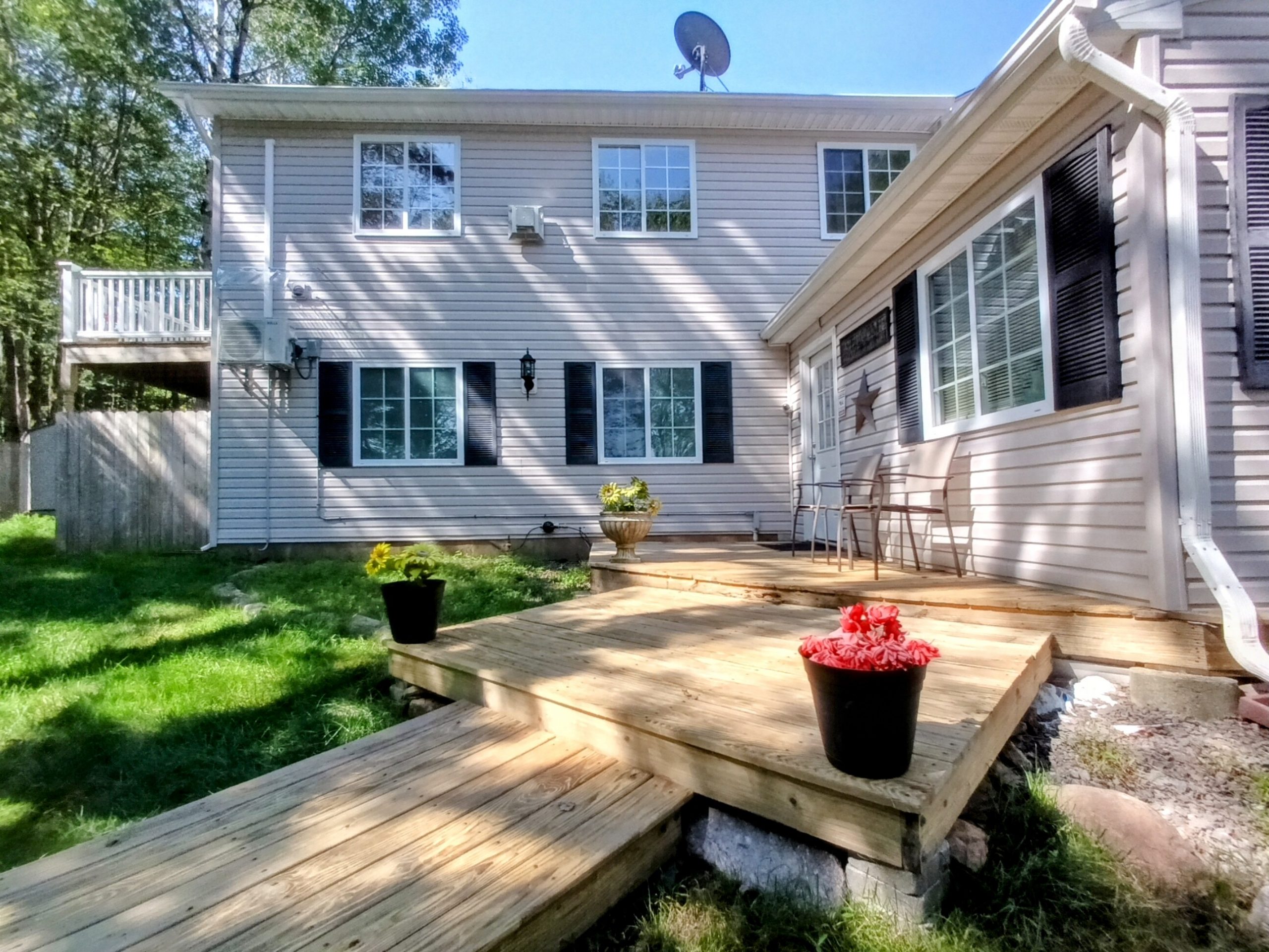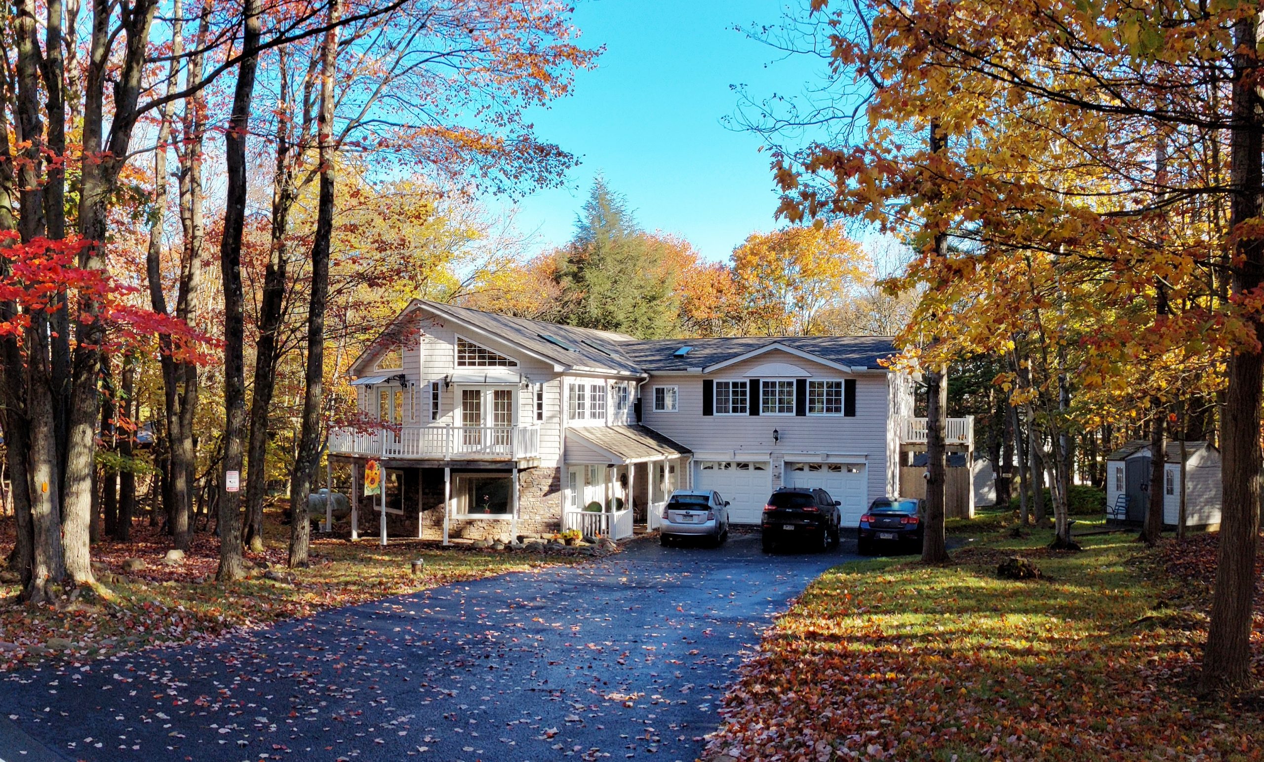 Special Features:– 7 Large Skylights.– 5 Large Decks.– Ample Driveway parking for 10 cars.– Manicured Landscaping.– Entire house and decks freshly power-washed.– Leaf Gutter Screens installed.– Two large outdoor storage sheds.