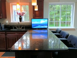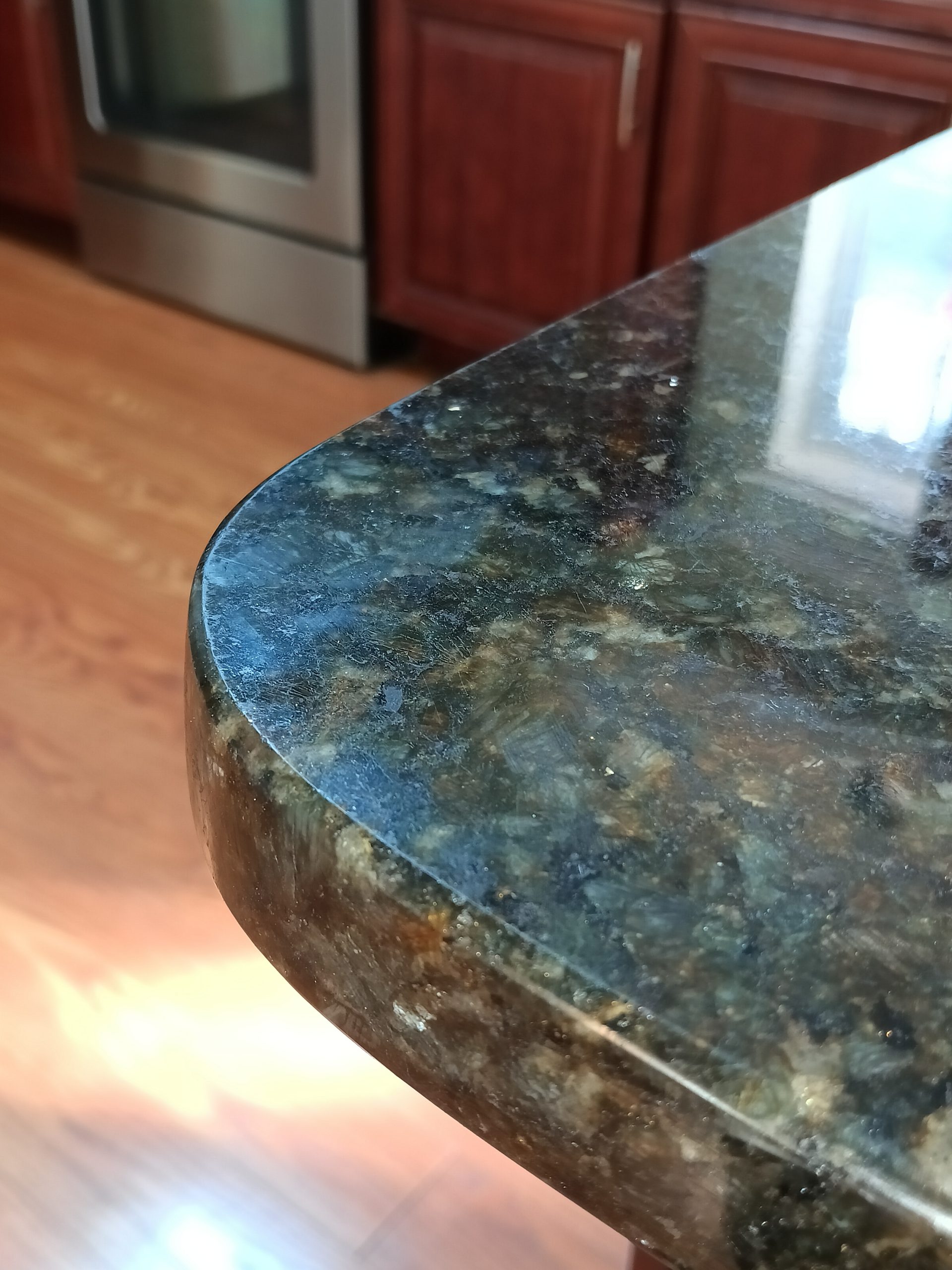 – 8 foot L shaped Island with Onxy Granite countertops.